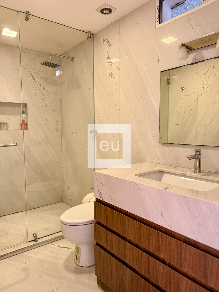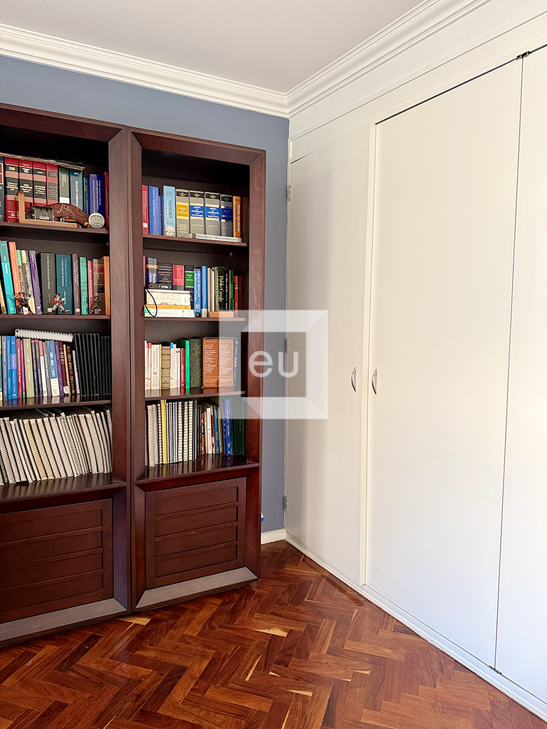 Classic apartment with a balcony spanning the entire unit, featuring high-quality finishes and recent remodeling. It includes 3 bedrooms, 2 full bathrooms, a spacious living and dining room, a kitchen, a laundry area, and a maid’s quarters.