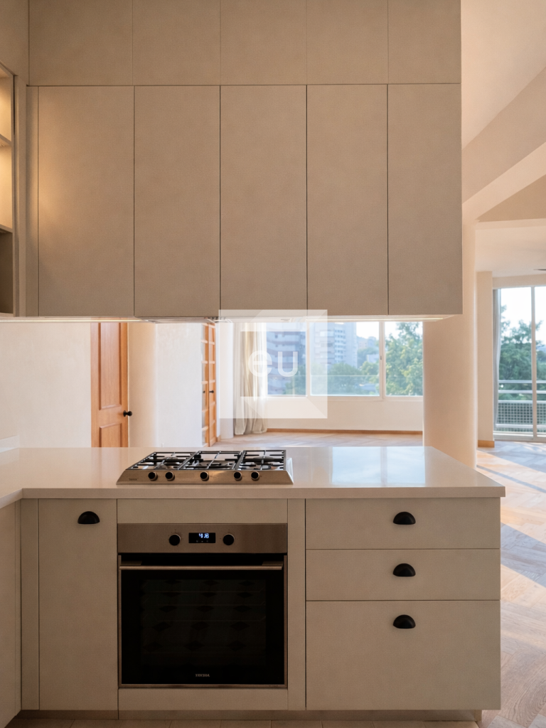Situated on the sixth floor, it stands out for its extraordinary natural light, panoramic open city views, and high ceilings, which enhance the sense of spaciousness and elegance. The entire living area is framed by large windows that bring in incredible light and beautifully showcase the surroundings.