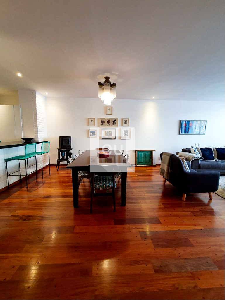 Furnished apartment in a modern building with few apartments. It has very good spaces, wooden floors, and a granite bar in the kitchen. It is located on a very quiet and low-traffic street. The building has 24-hour security and two parking spaces.