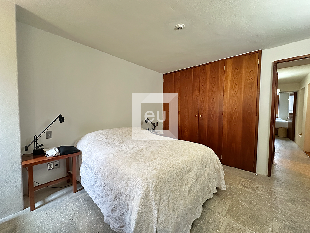 Departamento remodelado en venta frente al Parque México, ubicado en un edificio de los años 70. Cuenta con vistas arboladas directas al parque. El área social es amplia y recibe excelente iluminación y ventilación natural, con salida a balcón orientado hacia una jacaranda que florece en primavera. La cocina es cerrada, con desayunador y amplio espacio de almacenamiento. Incluye área de lavado ventilada naturalmente y un cuarto de servicio con baño, estudio o espacio de trabajo y un lugar de estacionamiento.