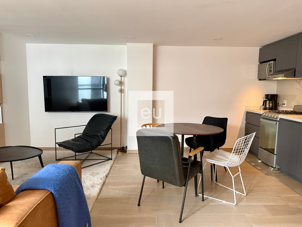 Excelente departamento tipo loft ubicado en segundo piso, perfecto para quien busca una propiedad funcional en una de las zonas con mayor demanda de la ciudad. Su recámara semiabierta, junto con el área social de sala, comedor y cocina integrada, crean un espacio cómodo, moderno y bien aprovechado.