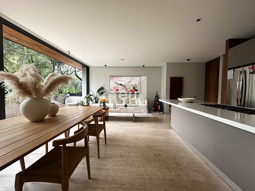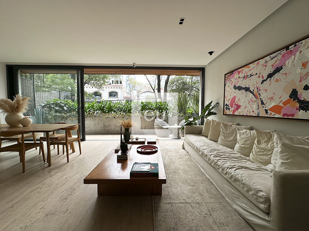 Incredible furnished apartment in the best location in Polanco, very close to Parque Lincoln. It has spacious areas and spectacular finishes. It features a terrace in the social area and another in the bedrooms, ideal for enjoying the outdoors. The main bedroom has a large walk-in closet. It is located in a building with few apartments, with 24-hour security. It has a storage room and two parking spaces. In addition, the building has a common roof garden.