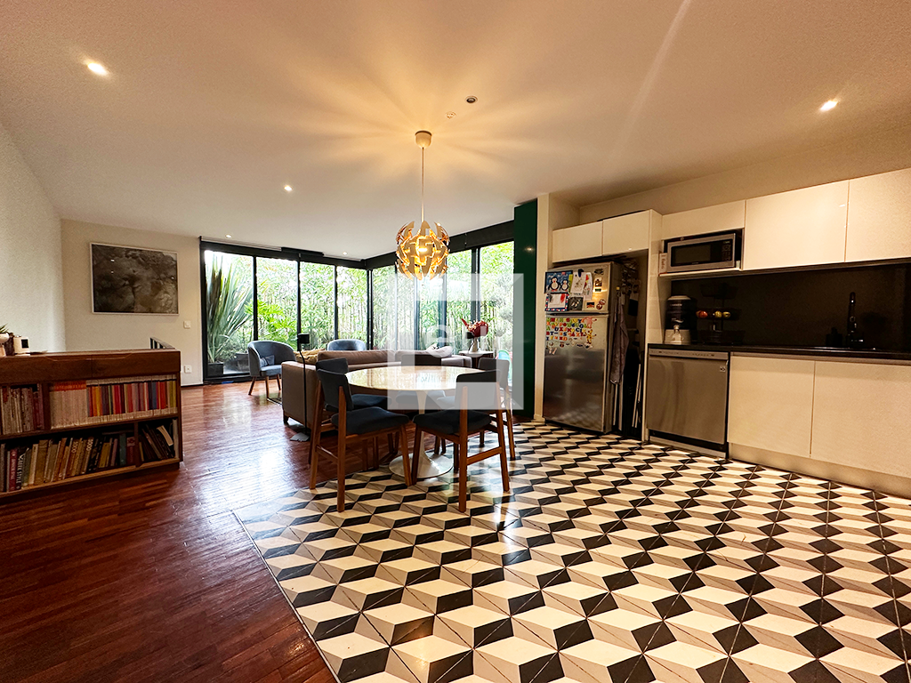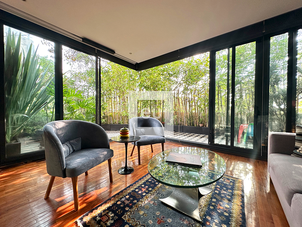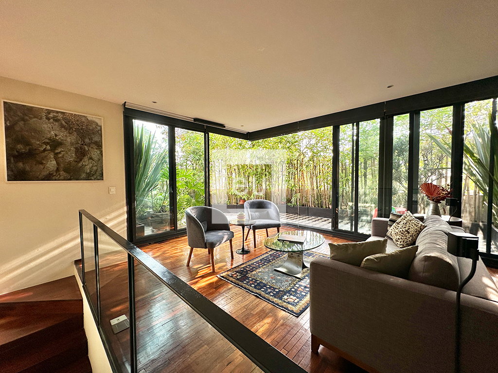 Beautiful duplex apartment with spacious terraces and tree-lined views. Top-tier architecture by Javier Sánchez’s firm. Excellent location just a few blocks from Plaza Río de Janeiro. Abundant natural light and ventilation, luxury finishes, Italian kitchen, and hardwood floors. Two bedrooms on the ground floor and a study or third bedroom, all with access to a balcony or small terrace.