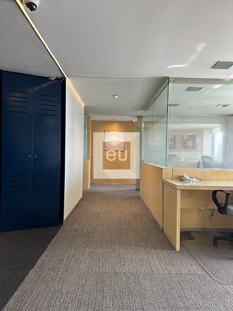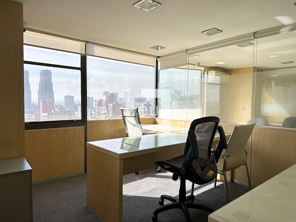 Fully furnished office with a spectacular view of the city and a prime location. It features 4 private offices, a work area, and a conference room. Additionally, it has three bathrooms and one parking space with valet parking service. The building offers 24-hour security.