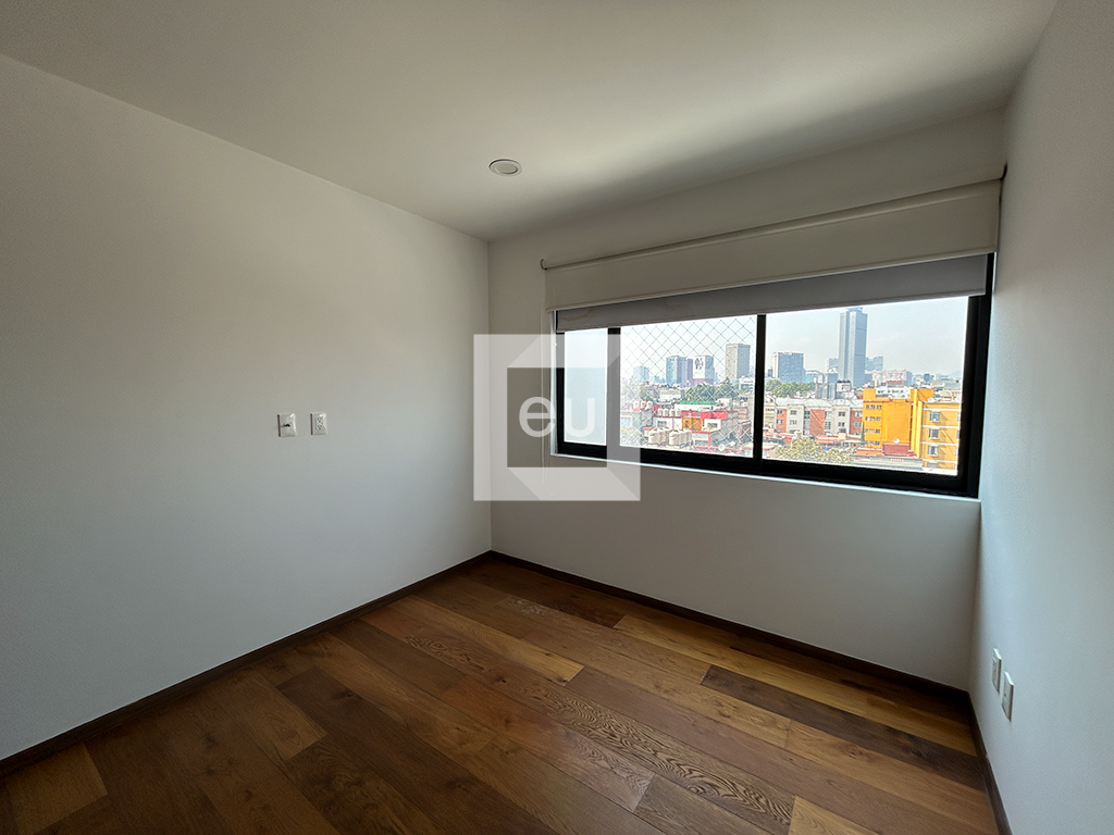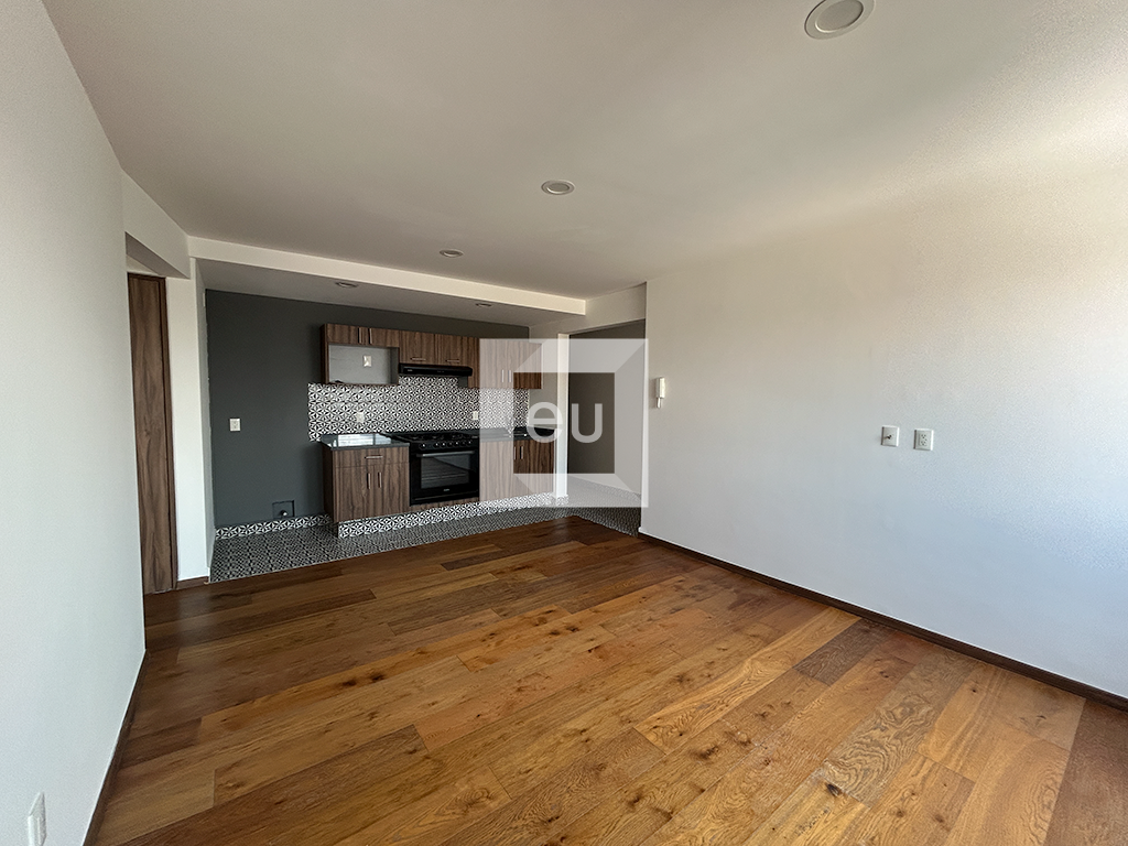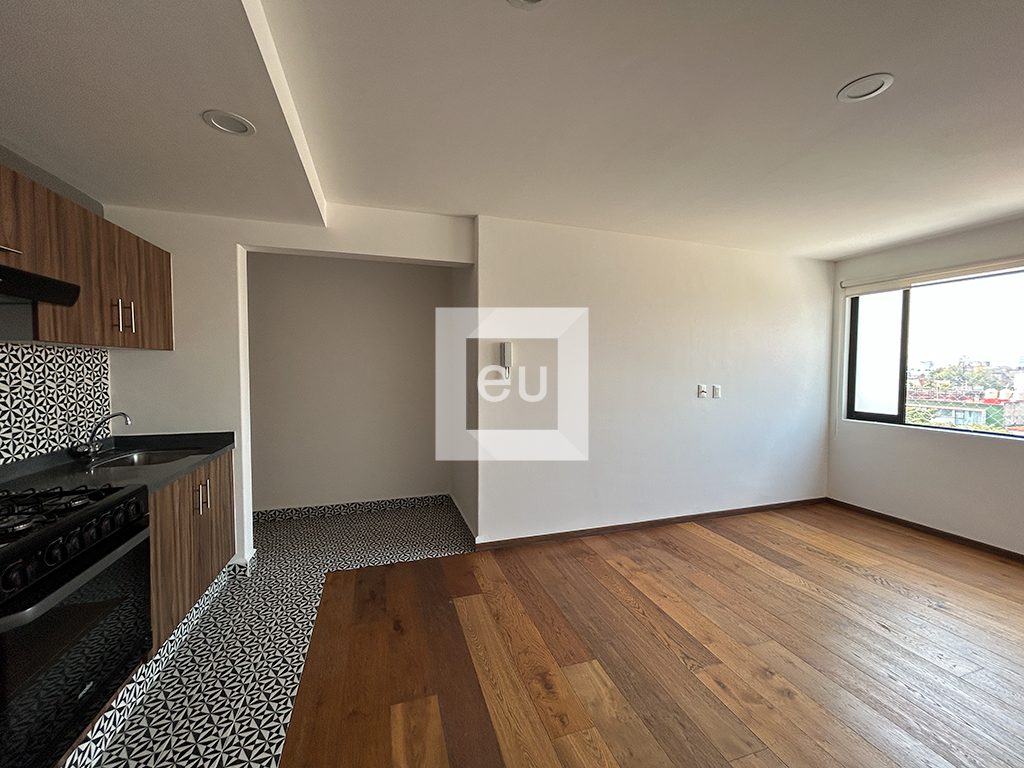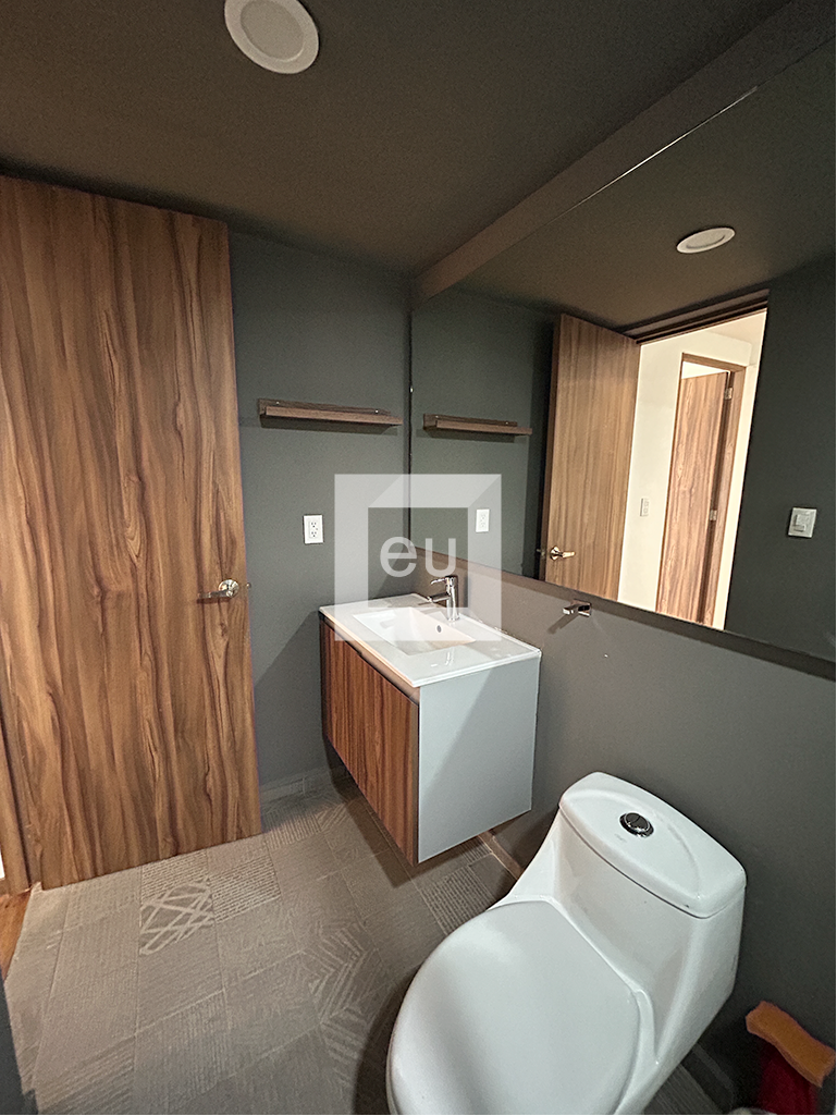 Iluminado departamento en renta con diseño moderno, excelente iluminación natural y vista despejada de la ciudad, lo que lo hace muy privado. Cuenta con una recámara, cocina integral equipada con cubiertas de granito, área social amplia, baño completo y área de lavado en el interior del departamento.