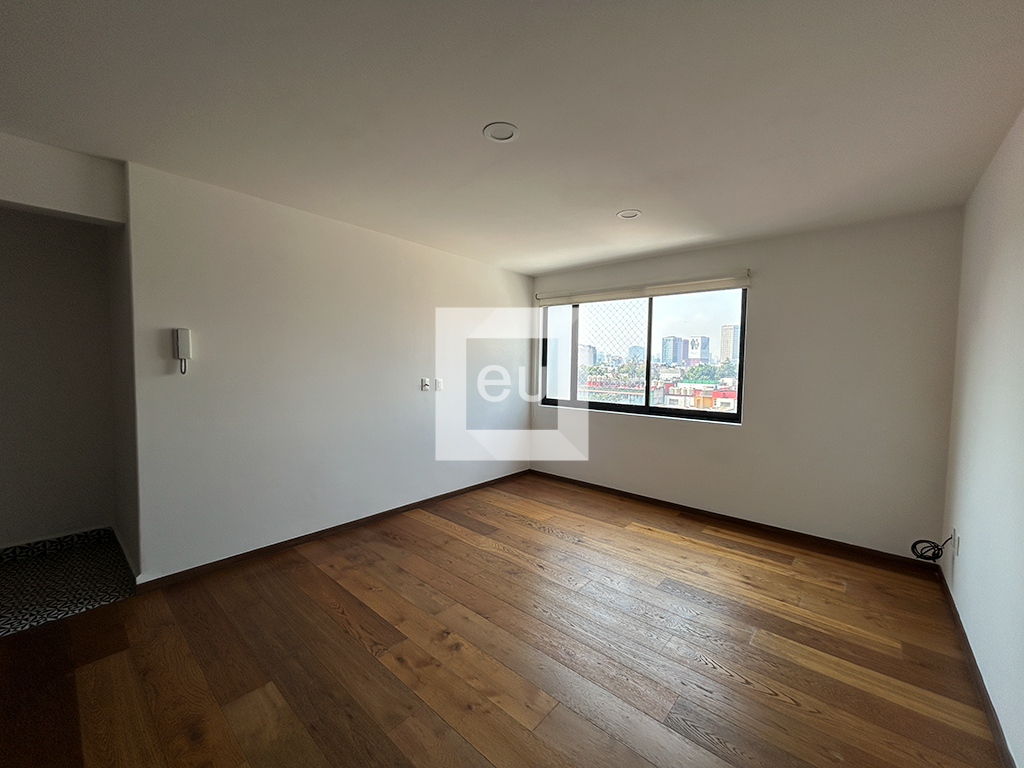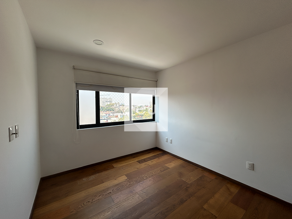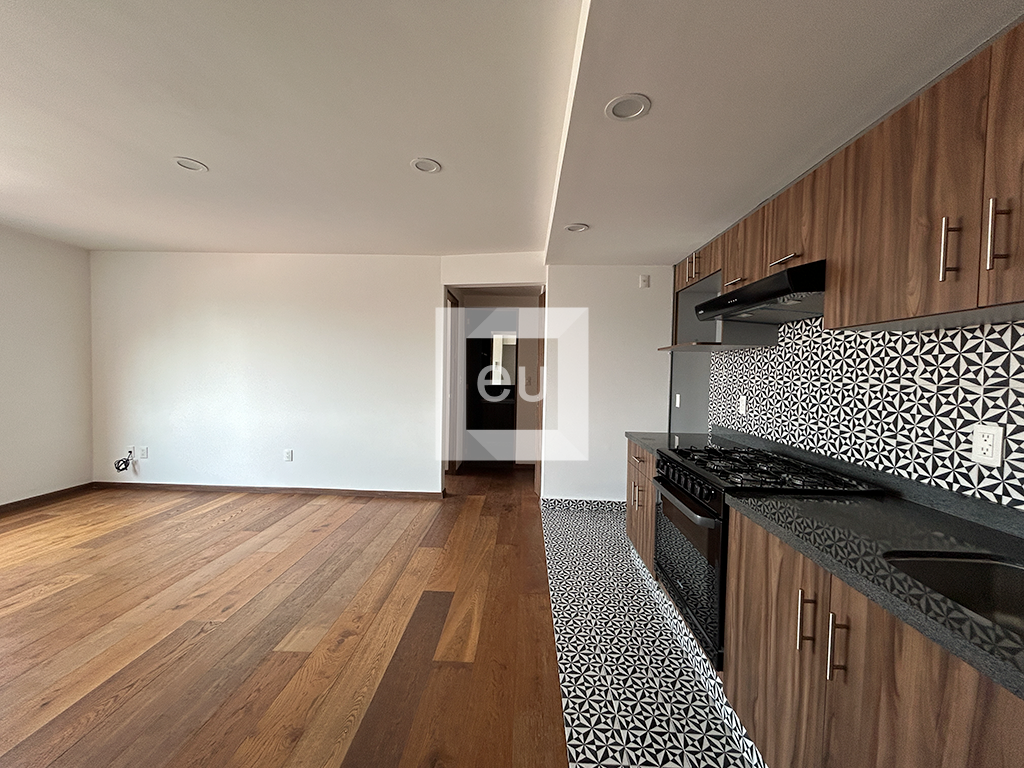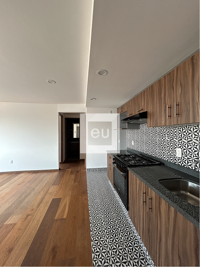 Iluminado departamento en renta con diseño moderno, excelente iluminación natural y vista despejada de la ciudad, lo que lo hace muy privado. Cuenta con una recámara, cocina integral equipada con cubiertas de granito, área social amplia, baño completo y área de lavado en el interior del departamento.