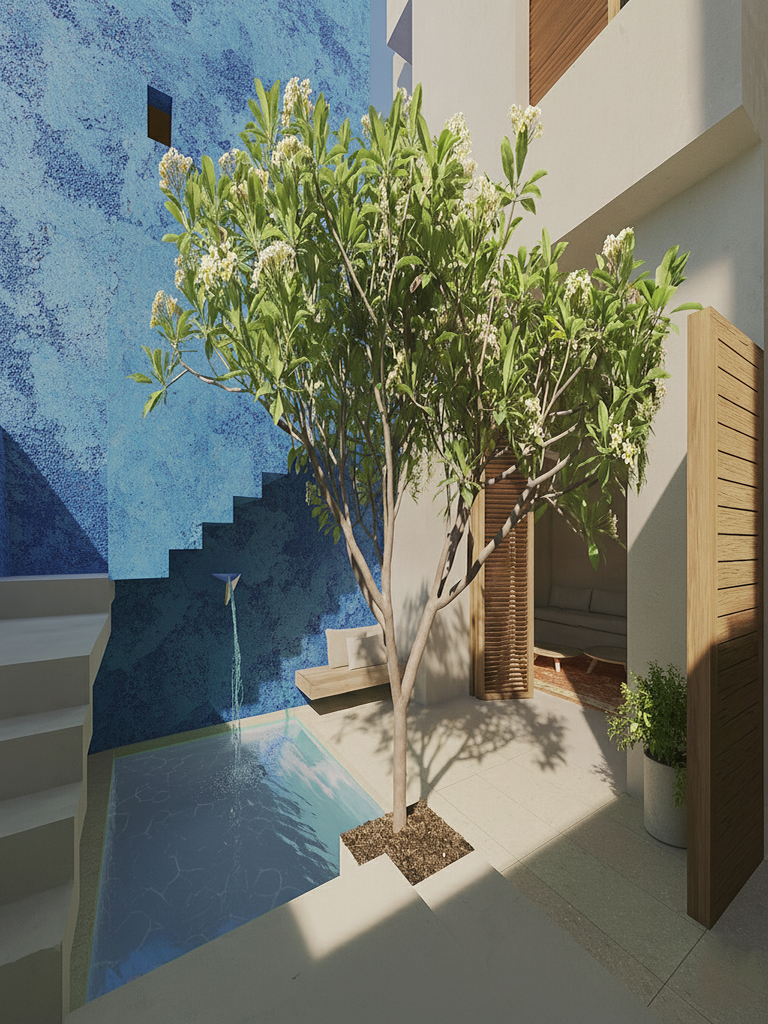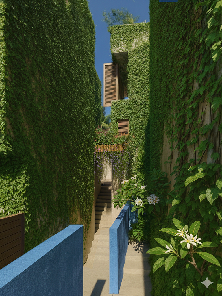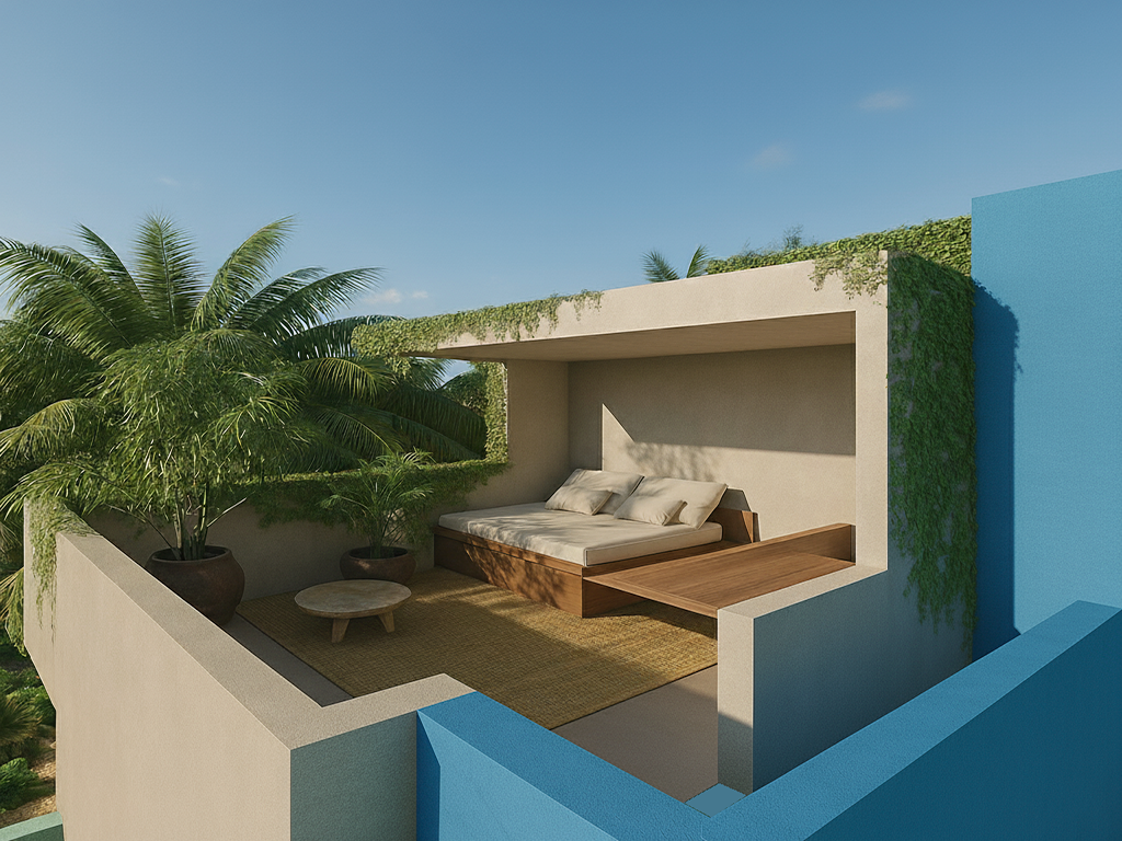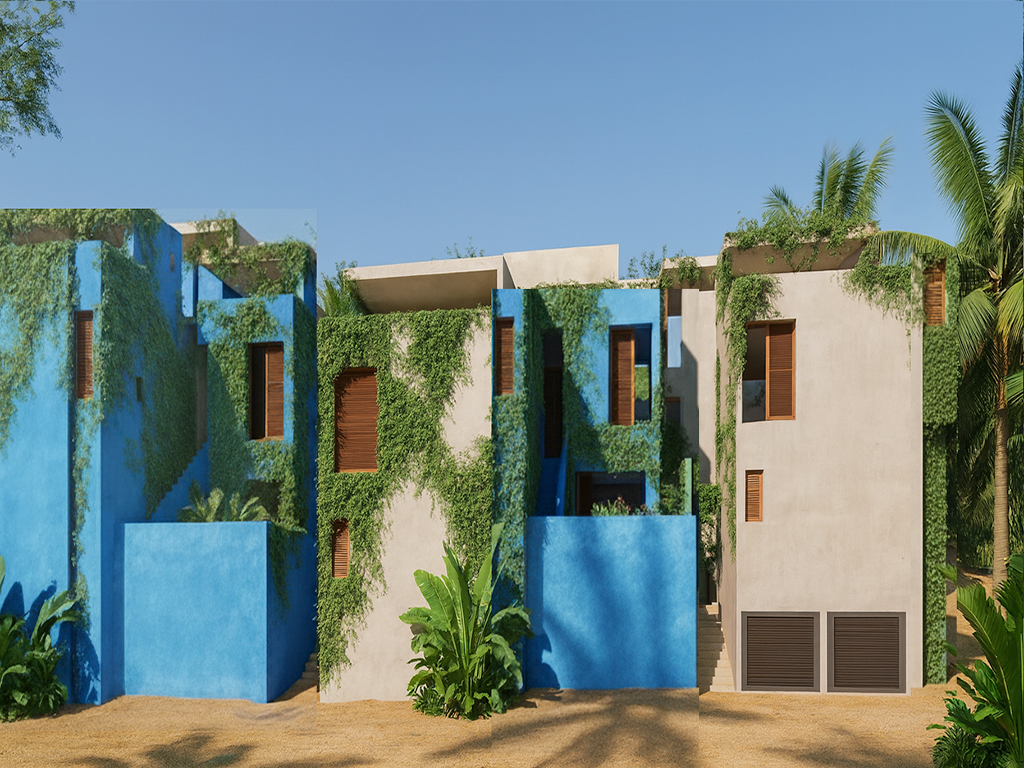 An incredible project by architect Alberto Kalach, inspired by the famous Kasbahs of Morocco. Just three blocks (a one-minute walk) from Punta Zicatela beach, ten houses are being built, sharing access only through the development’s walkways and staircases, ensuring complete independence and privacy. Distributed across three levels: the ground floor features a garden with a private pool, living room, open kitchen, and an outdoor shower; the first floor includes a bedroom with space for a king-size bed, a full bathroom, a closet, and a study area; and the third floor offers a roof garden with a covered area and an open-air section. An excellent investment opportunity for vacation rentals and owning your own little house by the sea. The houses are delivered with built-in cabinetry and furniture. A development by Surreal Estate, renowned in the area for its iconic projects such as Casa VO, Casa WO, Casa TO, and Casas Palmeras.