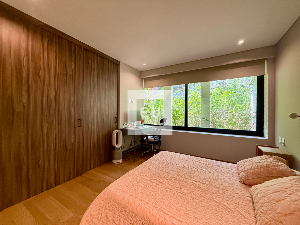 A 95 m² apartment with an additional 35 m² private patio, located in a boutique building of just five residences designed by CRB Arquitectos, on a quiet street in Condesa.