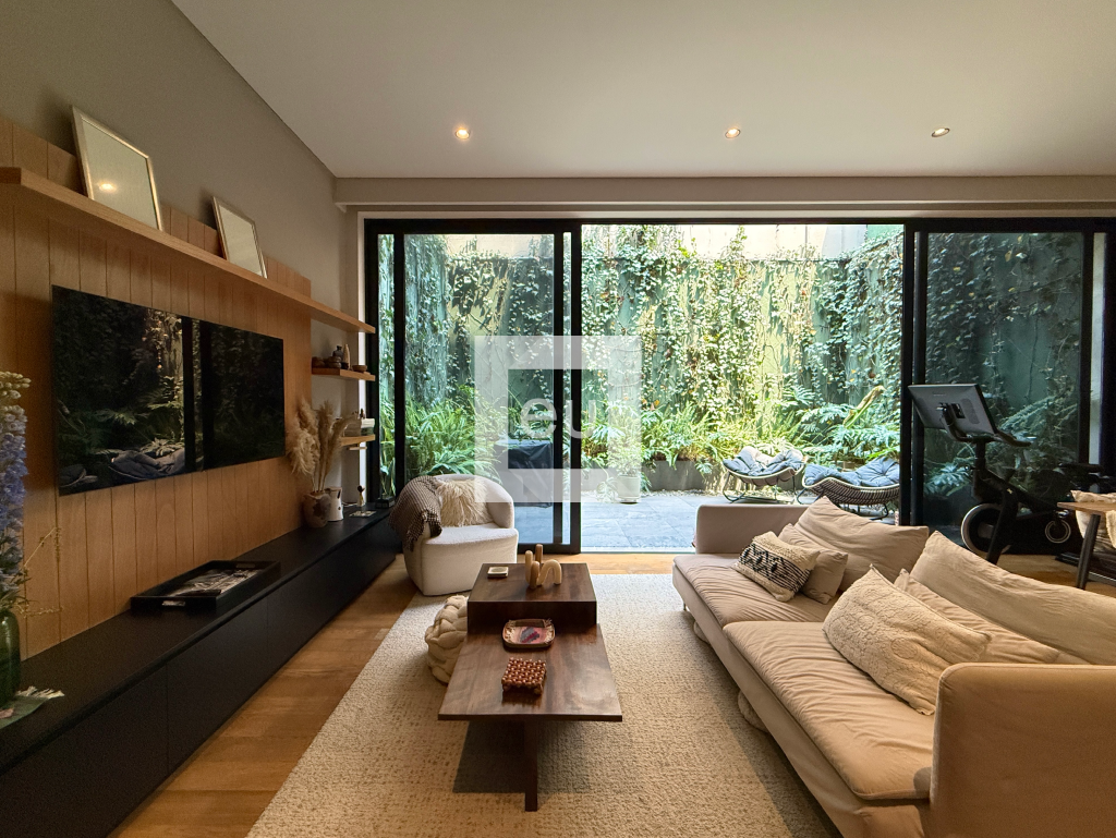 Departamento de 95 m² interiores más 35 m² de patio privado, ubicado en un edificio de solo cinco departamentos diseñado por CRB Arquitectos, en una calle tranquila de la Condesa.
