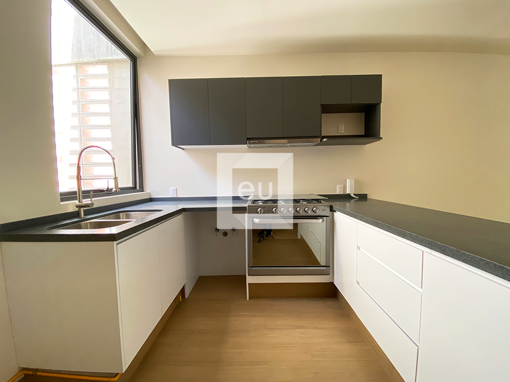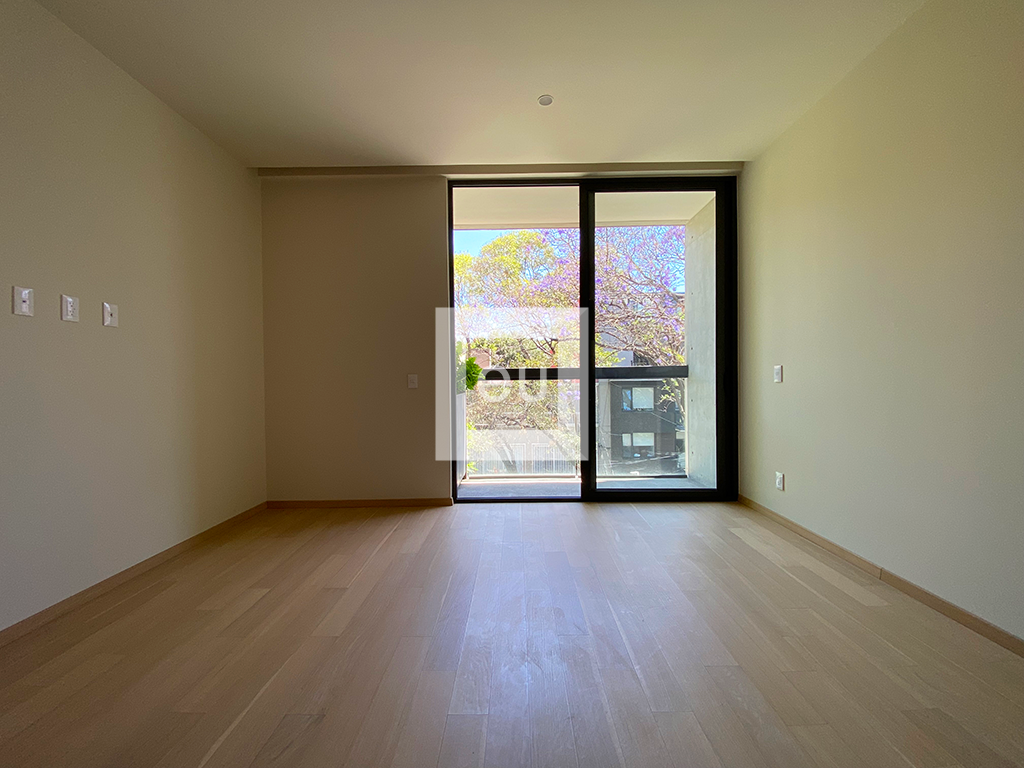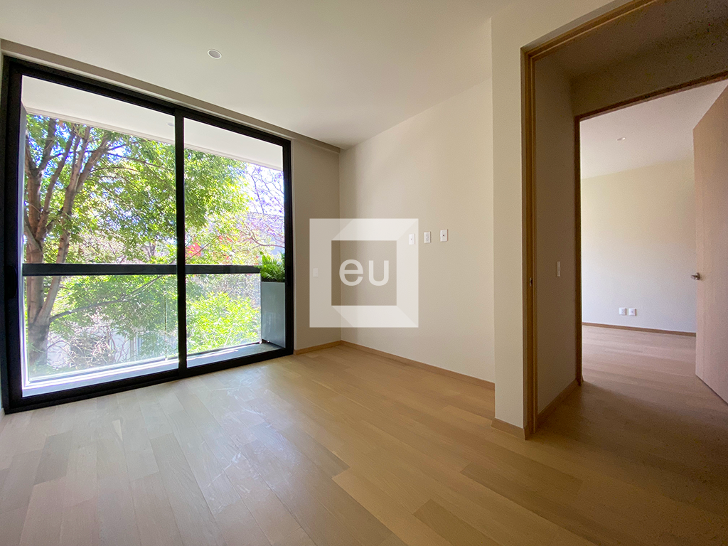 Departamento moderno con excelentes espacios, muy iluminado y hermosos acabados. Cocina abierta a una amplia área social con balcón, 2 recámaras con 2 baños completos y 2 lugares de estacionamiento. Tiene vistas arboladas. Edificio con tan solo 9 departamentos y vigilancia las 24 horas.