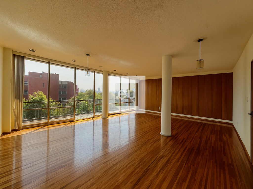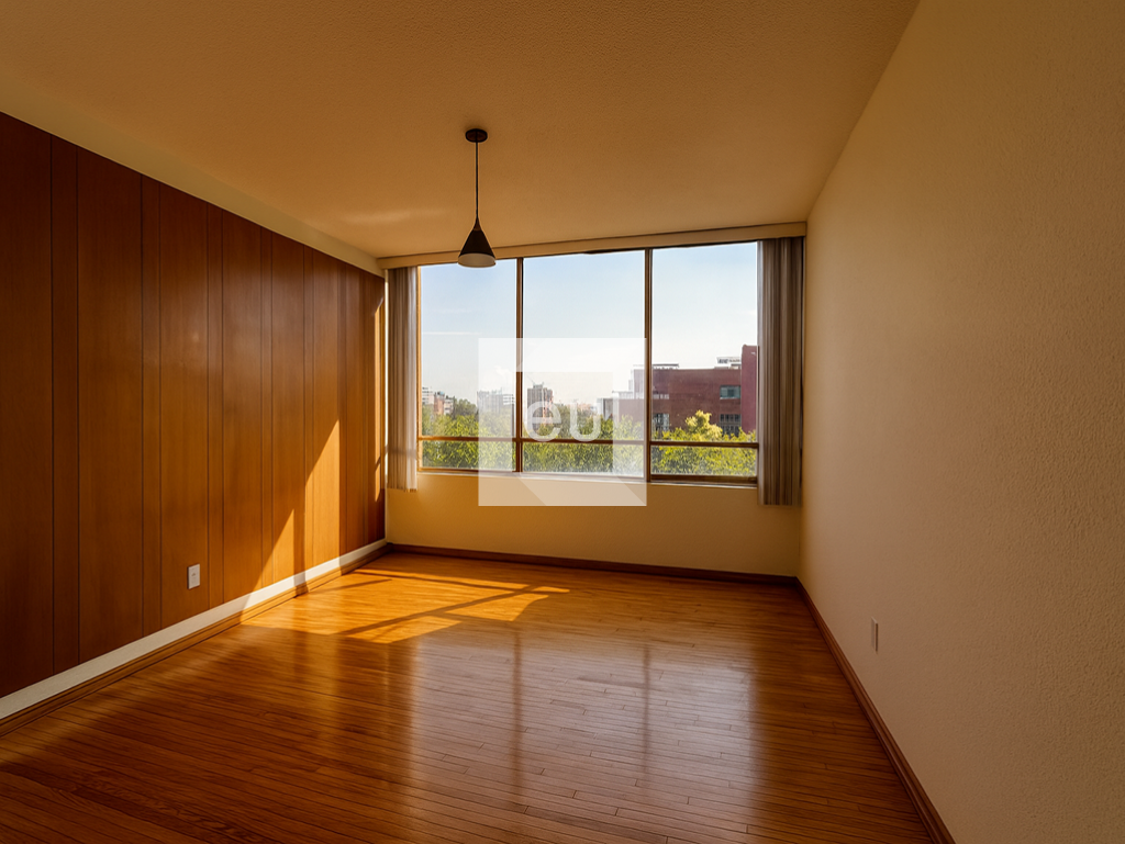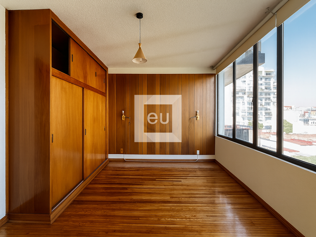 Conserva pisos de madera originales de los años 60, que aportan calidez y personalidad al espacio. Las recámaras cuentan con cancelaría de doble vidrio, lo que garantiza mayor confort acústico y térmico.