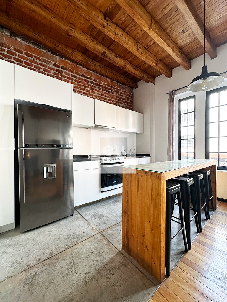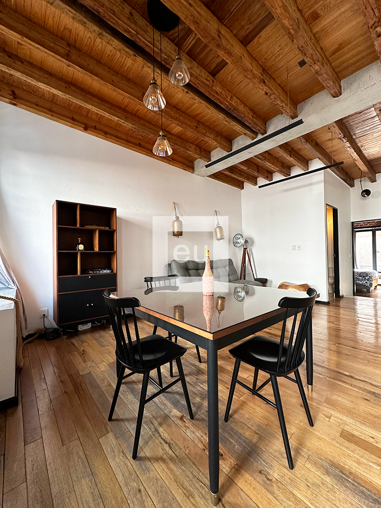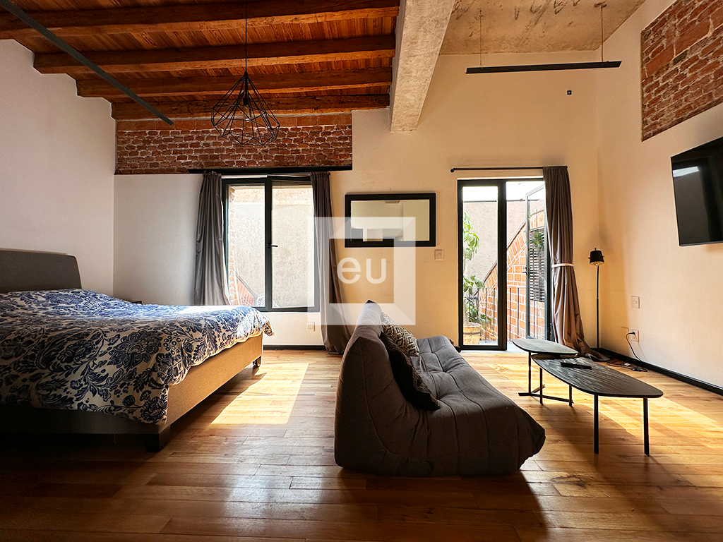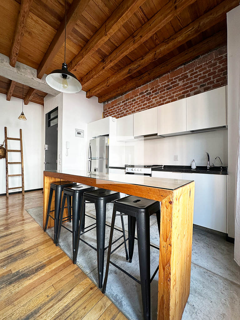 Bright apartment with high ceilings in a Porfirian-era building, completely remodeled. It is rented fully furnished and equipped, including air conditioning. It has a large walk-in closet and a study. It has a private-use terrace with a half bathroom. The building has 24-hour security and bicycle parking. Maintenance included.