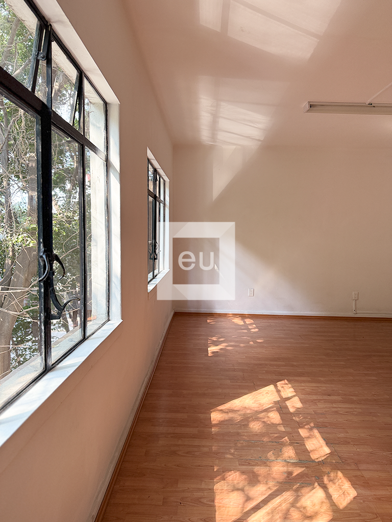 House from the 50s in Colonia Cuauhtémoc, ideal for offices, studios, etc. The property has large spaces and high ceilings that reflect its classic style. It also has excellent natural lighting.