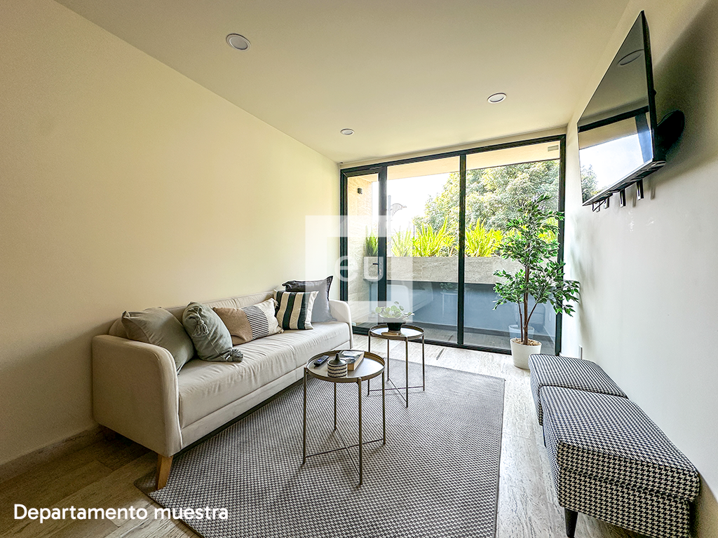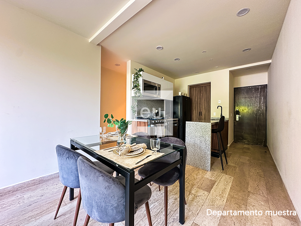 Development of 16 apartments for sale. Excellent distribution of spaces, high ceilings and high quality finishes. They have 2 bedrooms, 2-2.5 bathrooms and a parking space. Located a few blocks from the Estadio Azul and the monumental bullring, an area in full growth where the development of important residential and commercial areas is planned. Two blocks away you will find the José Clemente Orozco square, ideal for walking and/or walking your pet.